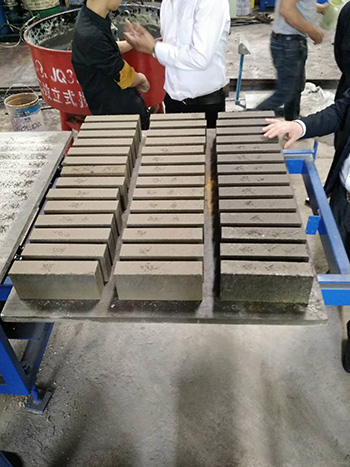泥巴、污泥制磚,一般首選液壓磚機(靜壓磚機),并根據(jù)材料的性質(zhì),一般是加10%左右的水泥以及1%的固化劑,然后進行攪拌、輪碾,待材料充分?jǐn)嚢杈鶆蚝笤偻ㄟ^液壓磚機來壓制成型。其余的保養(yǎng)階段,與普通材料制磚的保養(yǎng)過程是一樣的。