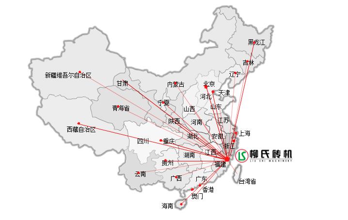 不管您需要任何一款免燒磚機設(shè)備,包括免托板磚機液壓磚機、PC磚機仿石透水磚機、收磚線以及其他水泥免燒磚機或者免燒磚機配件等需求等的,都可隨時與我們聯(lián)系。需要了解各種制磚工藝的,包括現(xiàn)在比較潮流的工藝,如PC磚水洗砂泥巴制磚、污泥制磚固廢制磚的都可以聯(lián)系我們!以下是我們的銷售網(wǎng)點分布圖:
